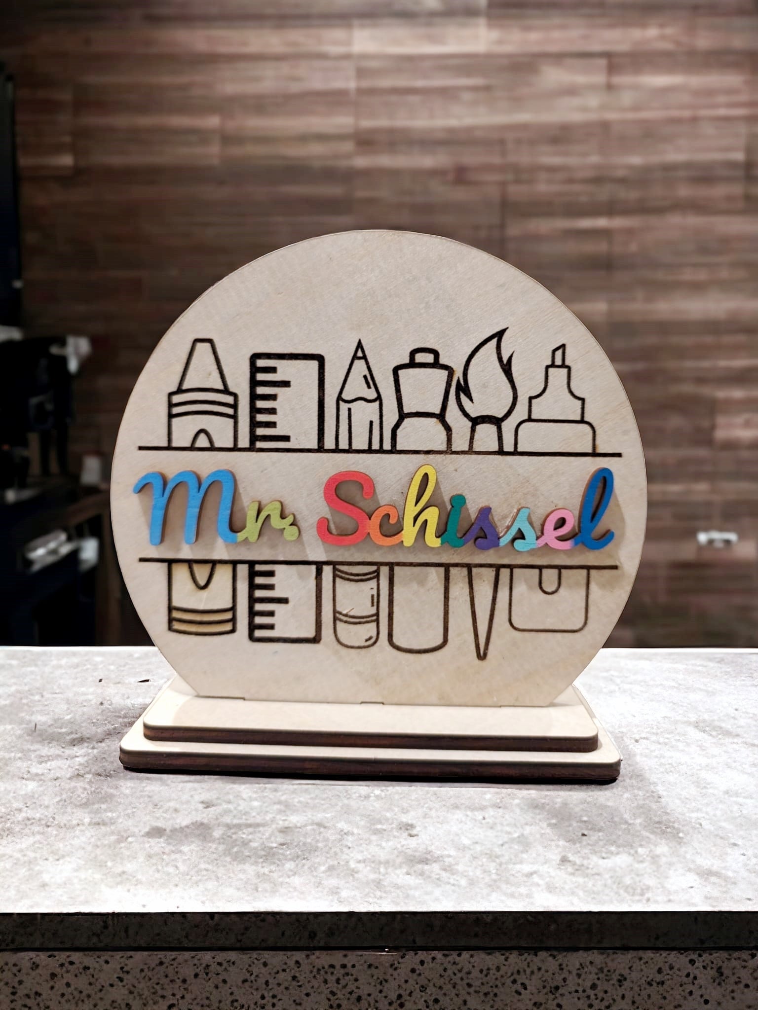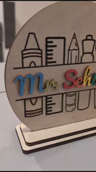 A fun and colorful sign for any teacher or important role model in your life. Show appreciation with this desk sign to jazz up their workspace. You may add a message on the back of the board if you wish to. Please add your detailed notes in the notes section. You can also order as a "color your own" option so that your child can color in the teacher's name and make it even more special as shown!