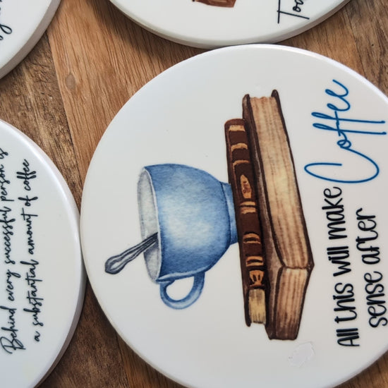 Brighten your tea time with our custom-designed coffee coasters, featuring a sleek ceramic finish and four unique, fun phrases on each coaster. Perfect for coffee lovers, this vibrant set adds a playful touch to your home while protecting your surfaces from heat and spills. Each coaster showcases a different phrase, bringing a smile to your face with every cup. Stylish, durable, and practical—this set is a must-have for any coffee enthusiast! These come as a set of 4.