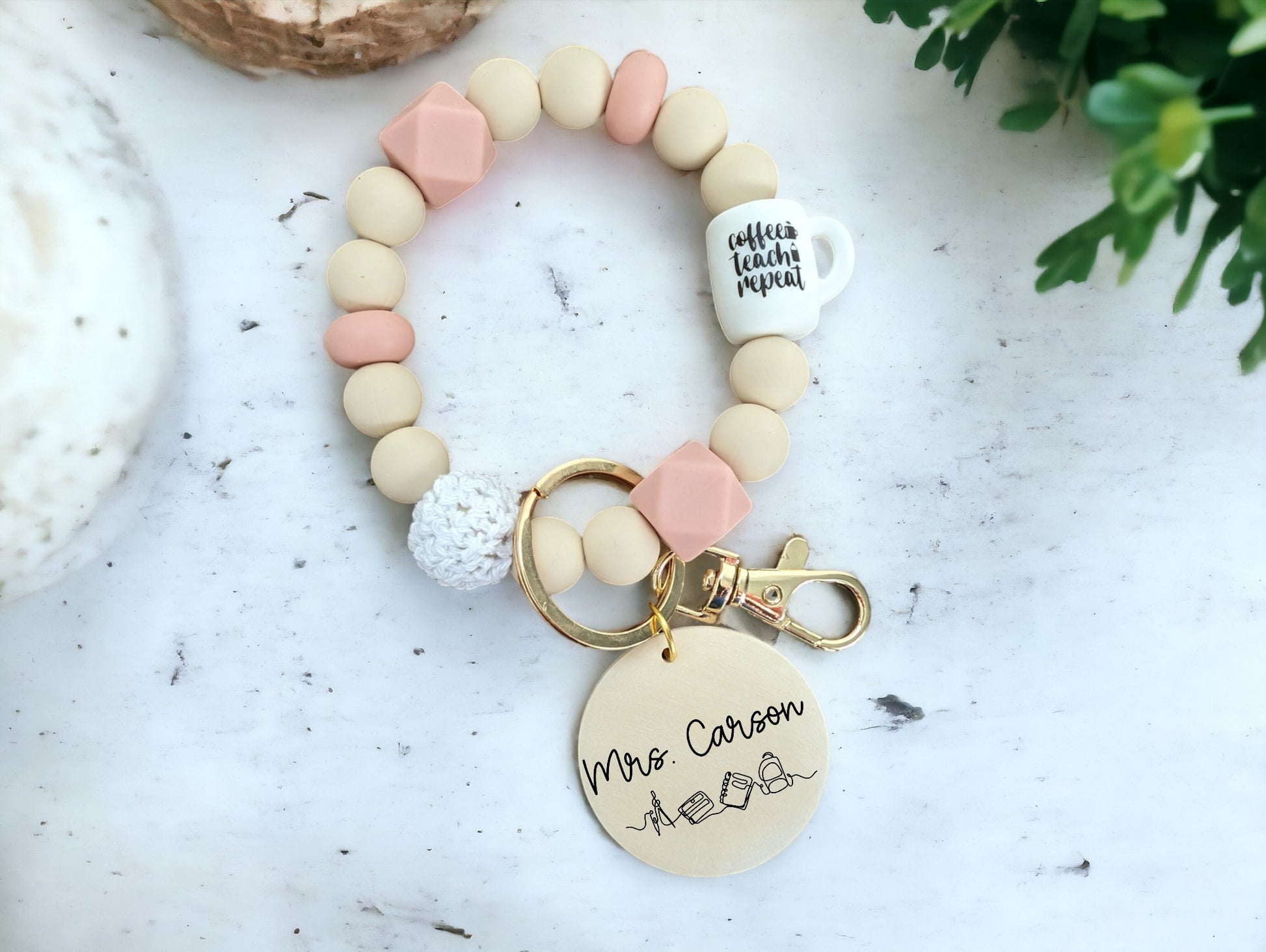 A fun Teacher Silicone Beaded Wristlet – a personalized, hands-free accessory for staying organized in style. Perfect for any teacher or mentor, it's a thoughtful token to celebrate and show appreciation for these special people in your life.