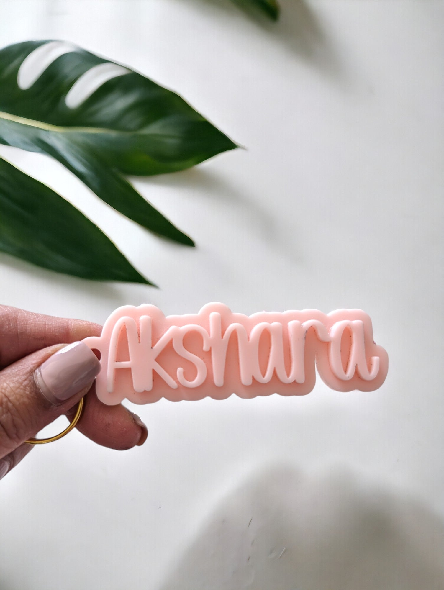 Customized 3D Name Keychains crafted using Double-Layered Acrylic. These are available in a Variety of Color Options. Ideal for Backpacks, Birthdays, Diaper Bags, Luggage Tagging, and many more gifting options!