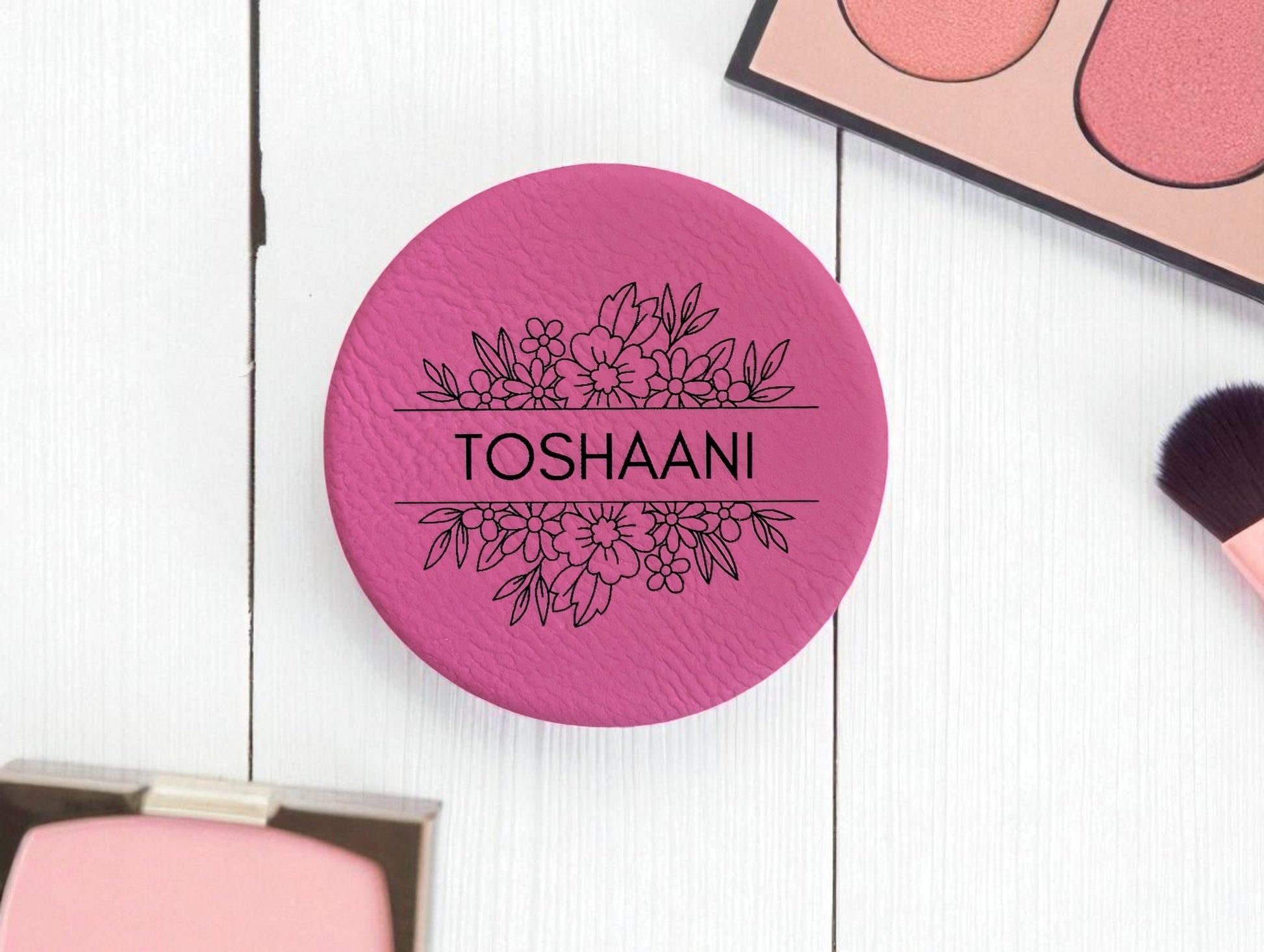 This personalized floral compact mirror combines elegance and practicality in one chic accessory. Featuring a beautiful floral pattern and a luxurious leatherette finish, it’s the perfect companion for touch-ups on the go. Customize it with a name to create a thoughtful gift for bridesmaids, friends, or loved ones — a stylish keepsake they’ll use every day!