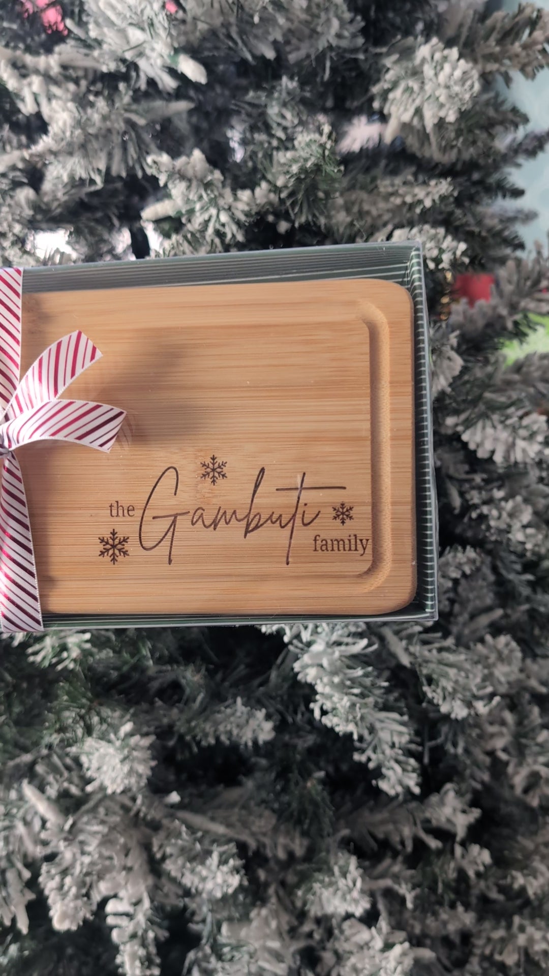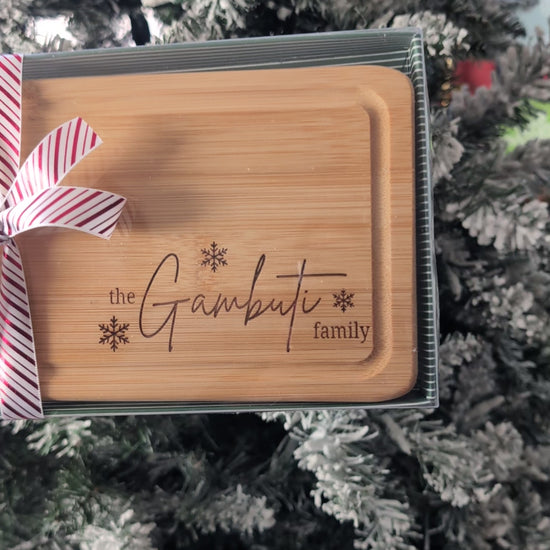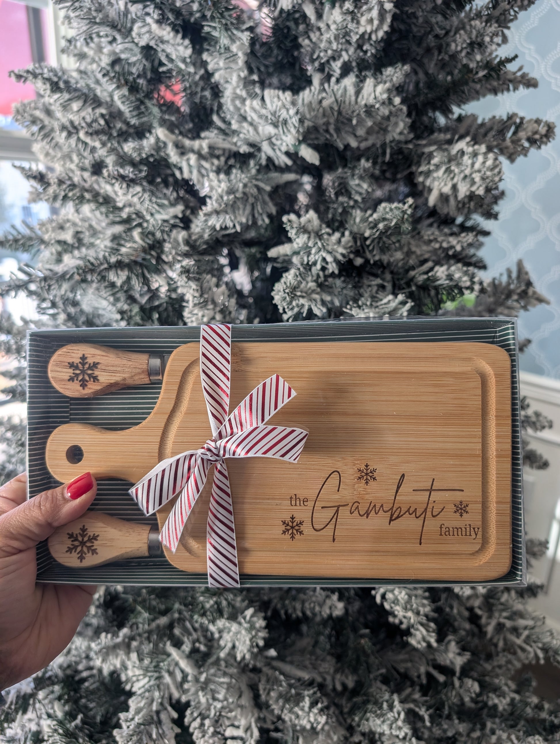 Celebrate the holidays with this stylish bamboo Mini Cheeseboard Set! Perfect for serving cheeses and charcuterie, it includes two versatile cheese knives to handle everything from soft to aged varieties. Comes with a snowflake pattern on the knives.