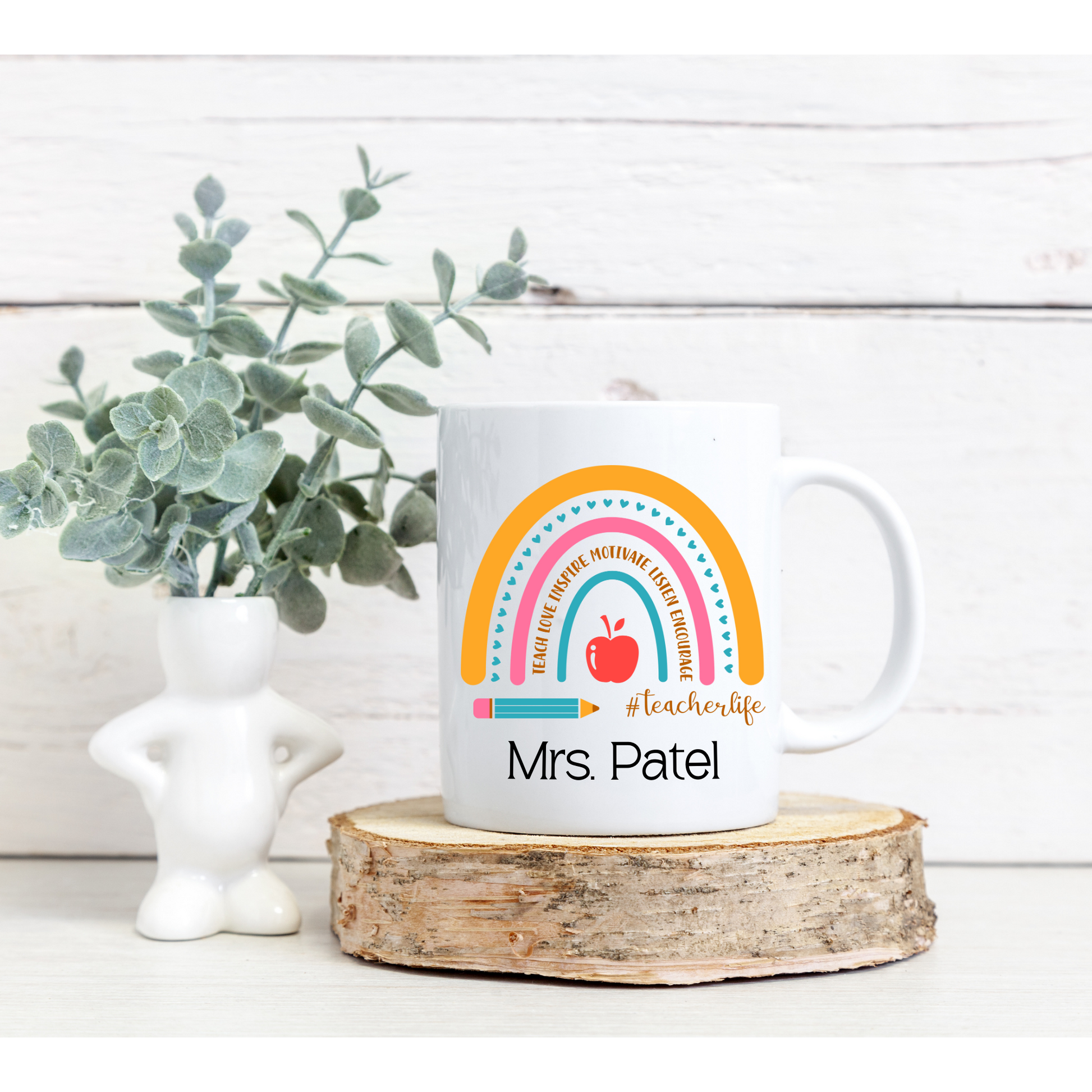 Instead of just any mug, consider gifting a personalized one to a teacher! It's a thoughtful gesture that will be appreciated for years to come. You have two font options to choose from. Check out the images below. These mugs will feature the same image on both sides.