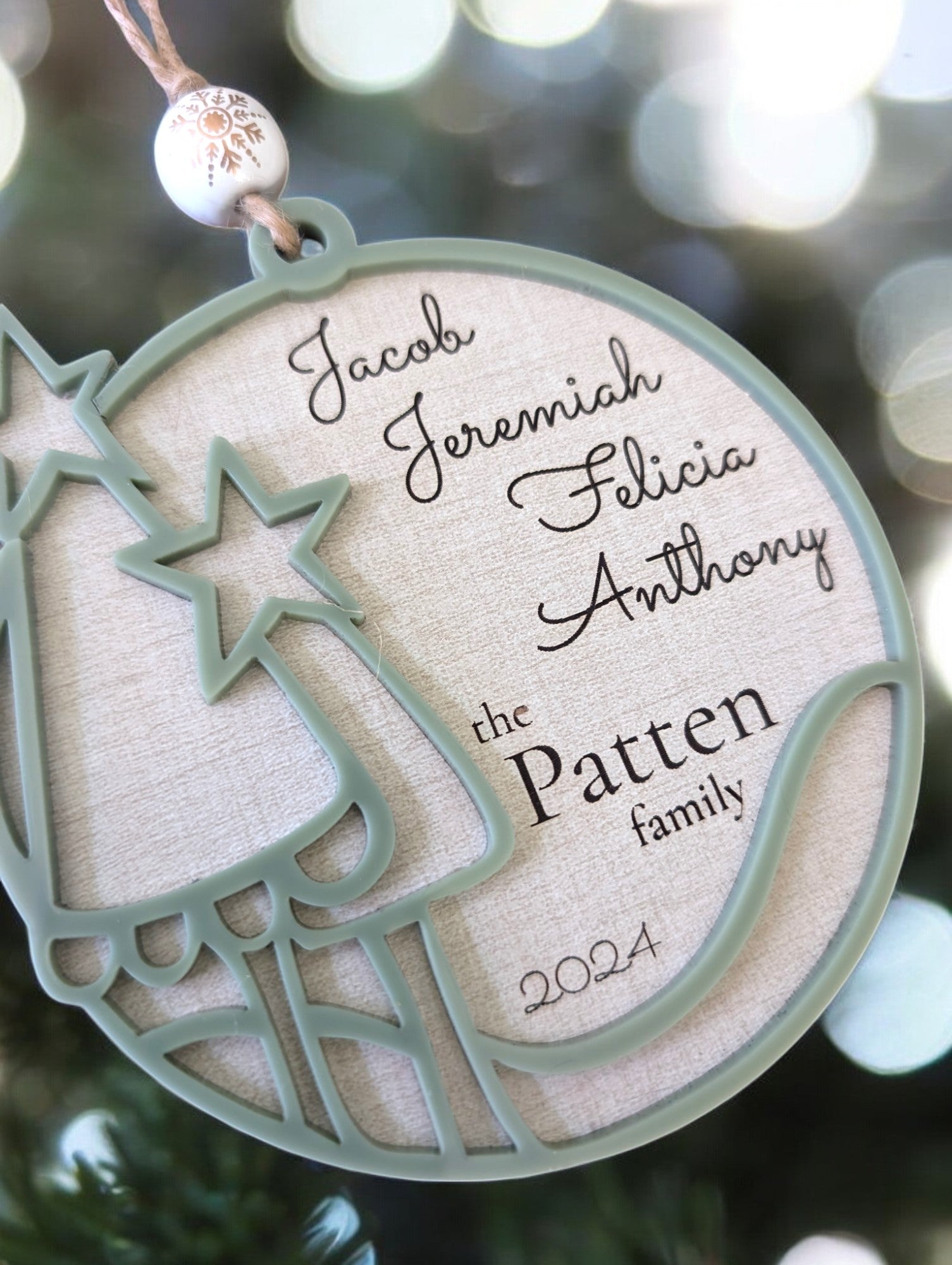 Add a touch of elegance to your holiday decor with our round personalized Christmas ornament! Featuring a stunning double-layer design with acrylic and wood, this ornament combines modern charm with rustic warmth. It's perfect for customizing with names, the year, and the family name. It’s a meaningful addition to your tree or a thoughtful gift for loved ones. Celebrate the season with a keepsake that’s as unique as your family!