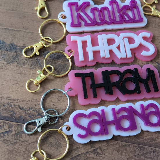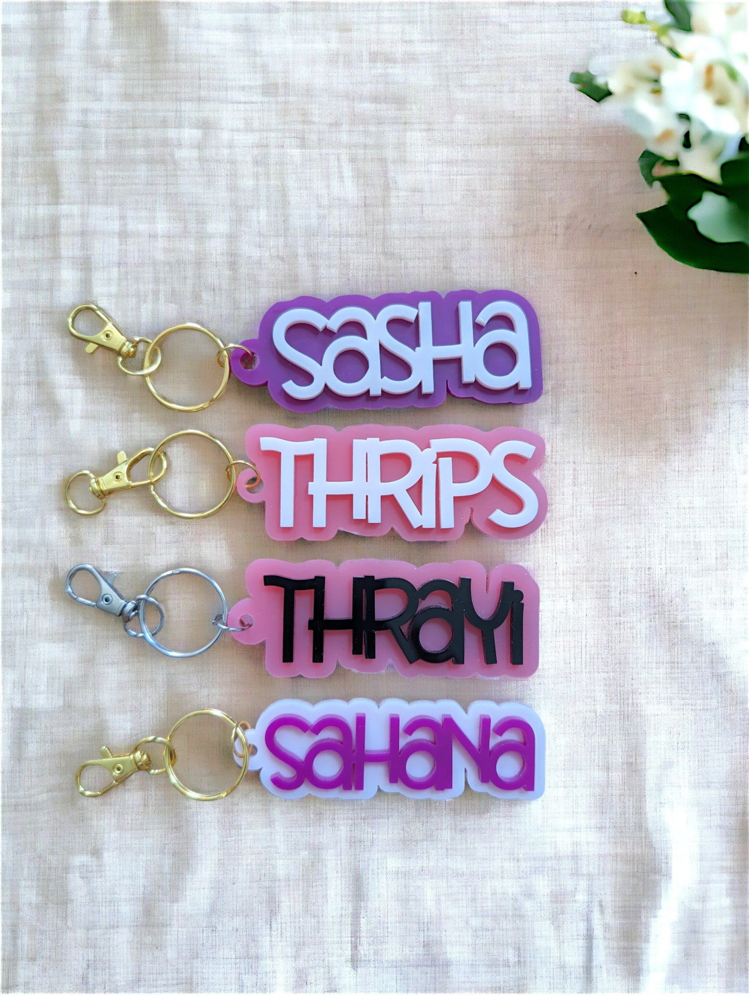 Customized 3D Name Keychains crafted using Double-Layered Acrylic. These are available in a Variety of Color Options. Ideal for Backpacks, Birthdays, Diaper Bags, Luggage Tagging, and many more gifting options!